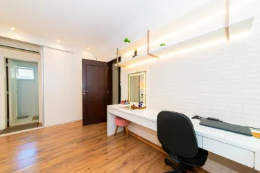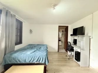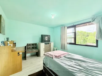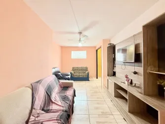 Tem 3 dormitórios, sendo 1 suíte, sala de estar, sala de tv, cozinha ampla, lavanderia, e quintal.
