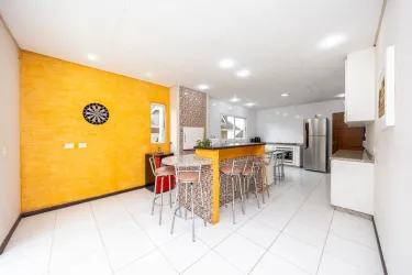 Ótimo sobrado semi-mobiliado, localizado no Pilarzinho, composto por 3 quartos sendo 1 suíte máster com closet, sala para 2 ambientes, móveis planejados na cozinha, lavabo, 2 banheiros sociais, área de serviço, sacada, área externa com churrasqueira á carvão e forno á lenha.