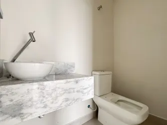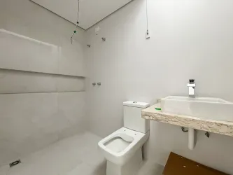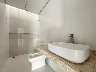 - São 04 vagas de garagem cobertas, 1 lavabo, área de jardim a frente e edícula com churrasqueira nos fundos do terreno com 1 quarto, banheiro e lavanderia.